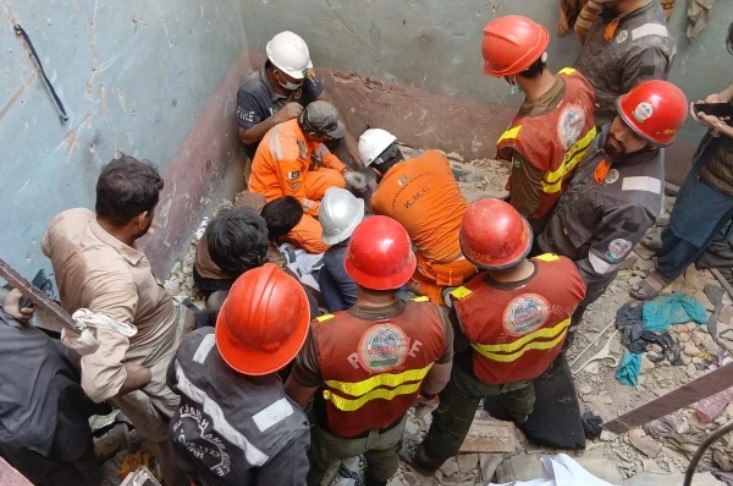 ریسکیو حکام کا کہنا ہے کہ عمارت تین منزلہ ہے اور ہر فلور پر ایک کمرہ قائم ہے، تنگ گلیوں کی وجہ سے ریسکیو آپریشن میں مشکلات کا سامنا ہے۔