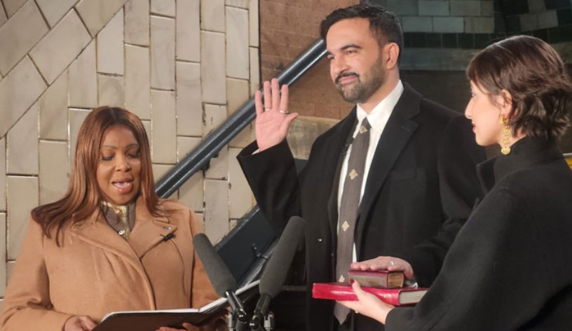 اٹارنی جنرل نیویارک لیٹیا جیم نے زہران ممدانی سے ان کے عہدے کا حلف لیا۔ اس موقع پر زہران ممدانی کی اہلیہ بھی موجود تھیں۔